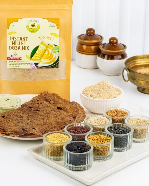Introducing Instant Millet Dosa Mix with the Goodness of Sprouted Ragi & Kambu. Millet Flour Dosa is an instant and quick fix for morning breakfast loaded with the Goodness of millets and Ancient Black rice. Millets have various benefits for health, including Weight Loss. Millets are high in proteins and gluten-free grains. Most types of Millets are rich in fiber, which makes your stomach feel full longer.